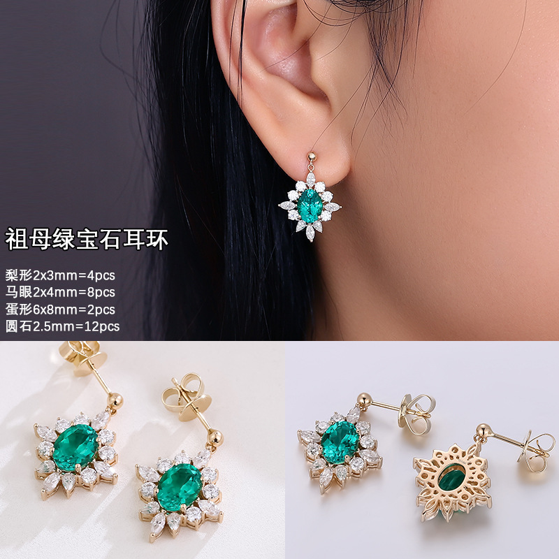エメラルドイヤリング 18K ゴールドジュエリーカスタムファクトリーライト高級ハイエンド非退色卵型宝石イヤリング新しいスタイル