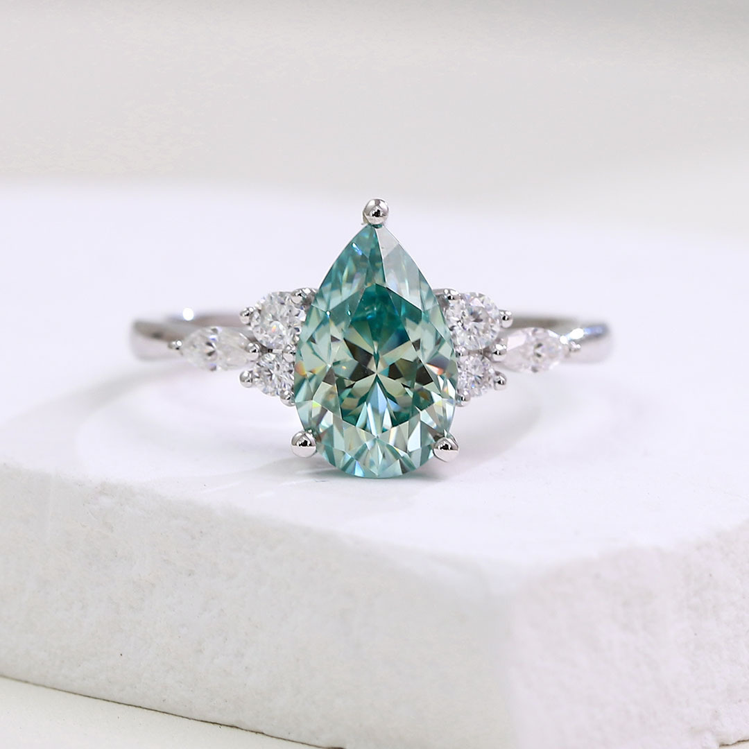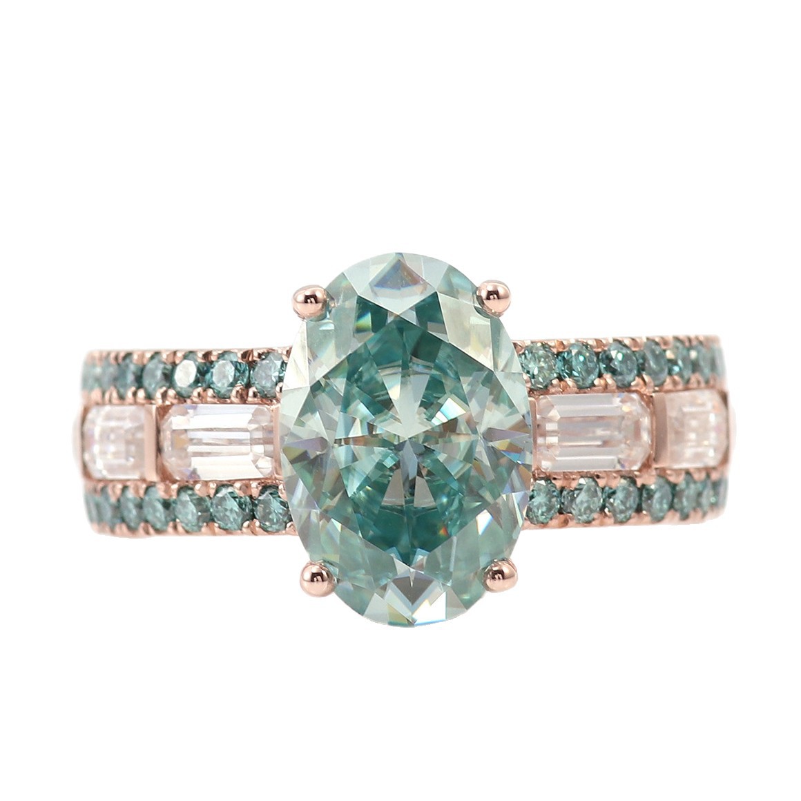 K ゴールド モアッサナイト リング カスタマイズ D カラー 3ct ブルー グリーン モアッサナイト ジュエリー カスタマイズされたライト ラグジュアリー誇張リング