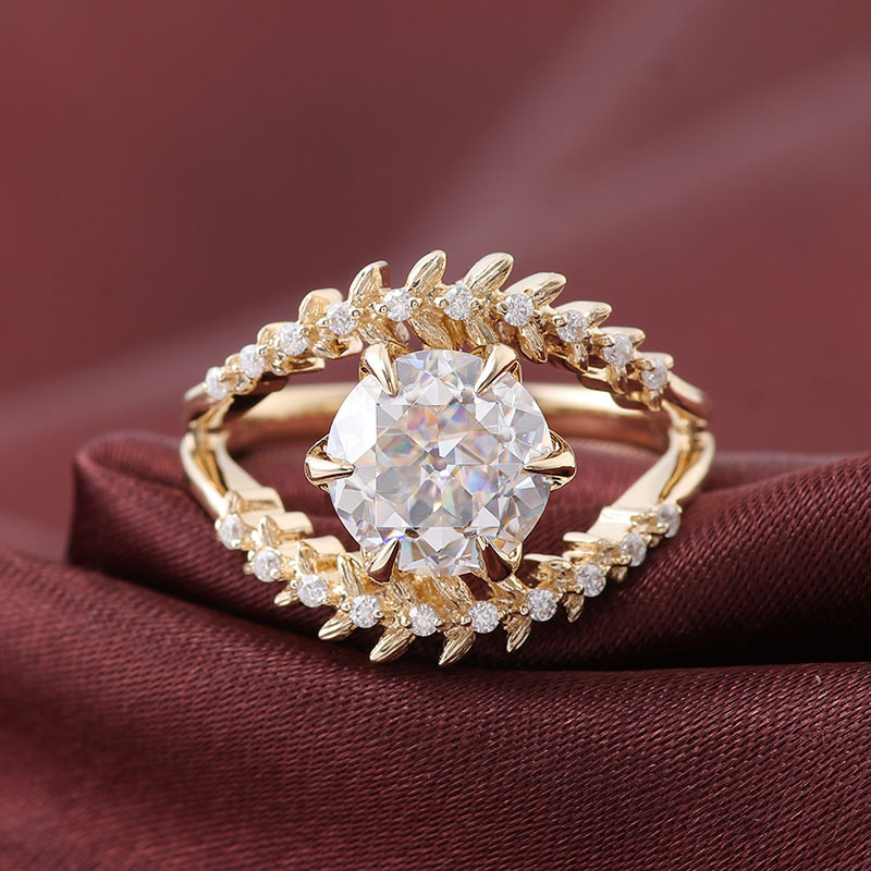 ゴールドカラーモアッサナイトリングカスタマイズされた 2 カラットの工場卸売カスタマイズされたジュエリークロスボーダーホットセールリアルゴールドは色あせません
