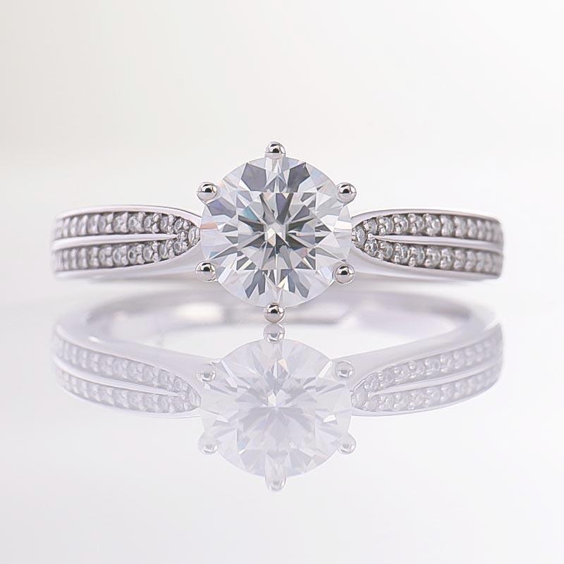 莫桑石指輪18kプラチナ四爪プロポーズ婚約女性ドリルリング唯愛一生2カラット鳩卵結婚指輪