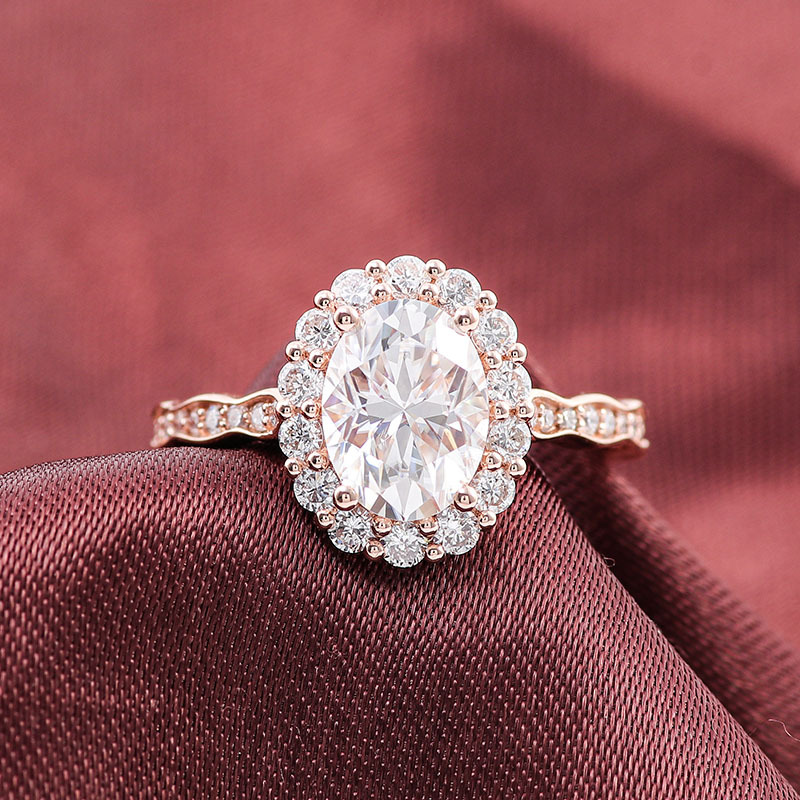 国境を越えた欧米の18k金莫桑ドリルリング女性楕円形クララ指輪の王冠金と一緒に結婚指輪を求めた