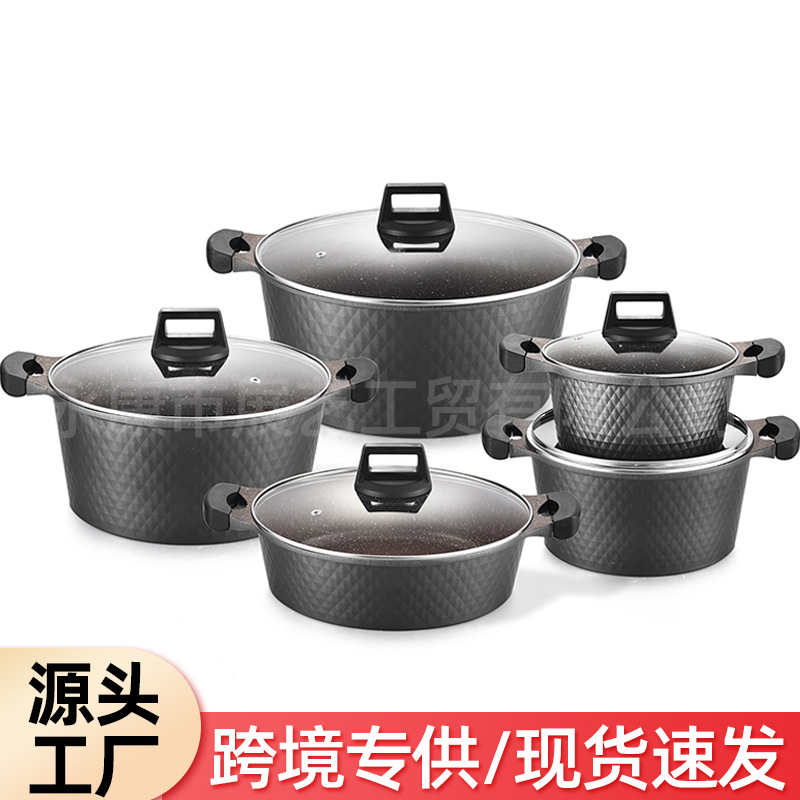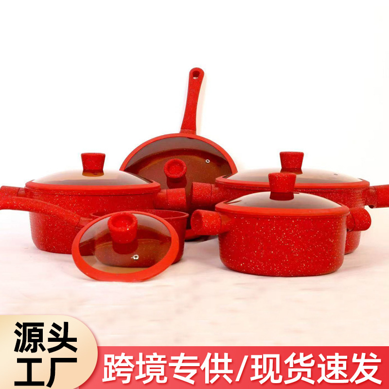 10個入りポットアルミセット鍋外国貿易メディカルストーンミルクポットスープポットノンスティックフライパンクロスボーダー高品質ポットセット