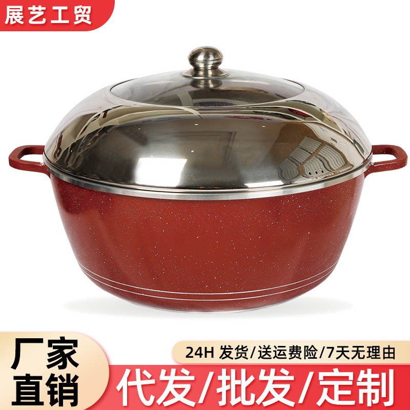 40cm スープポット アルミダイカスト ノンスティックポット ガラス蓋付き 外国貿易スポット クロスボーダー 業務用 家庭用 スープと接着剤作り