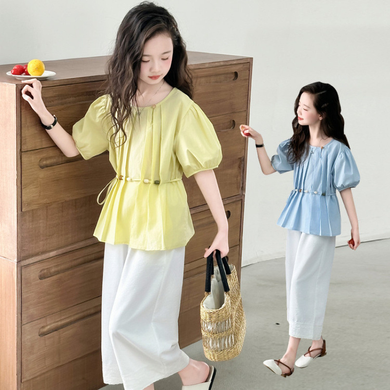 女の子サマースーツ 2025 新しい子供の半袖トップス女の子カジュアルルーズ 8 点ワイドレッグパンツ 2 点セット