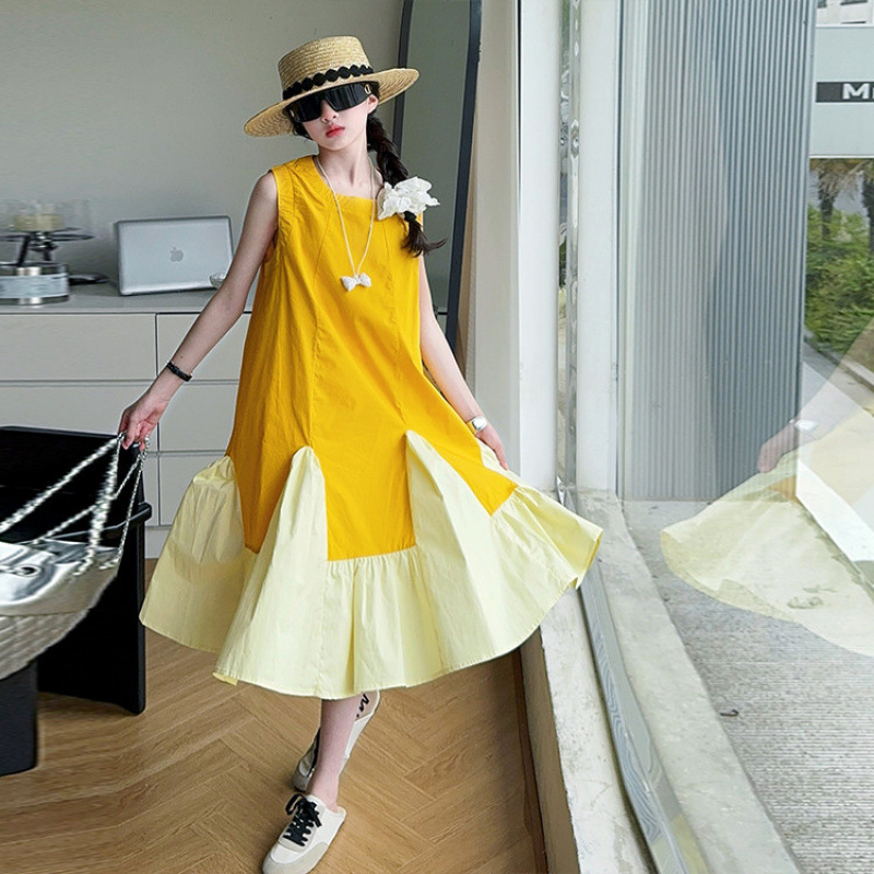 女の子韓国風ベストドレス夏服2025新しいスタイルの女の子の気質と西洋スタイルのデザインノースリーブフィッシュテールドレス