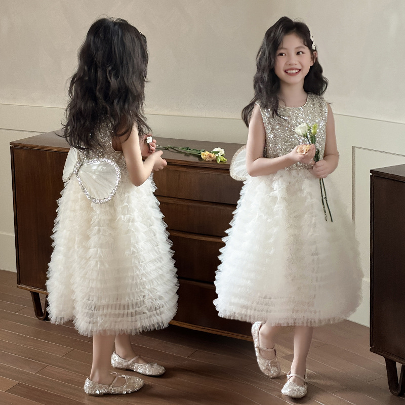 女の子ノースリーブワンピース夏2025新作子供ベストスカートスパンコールお姫様スカート赤ちゃん翼糸スカート