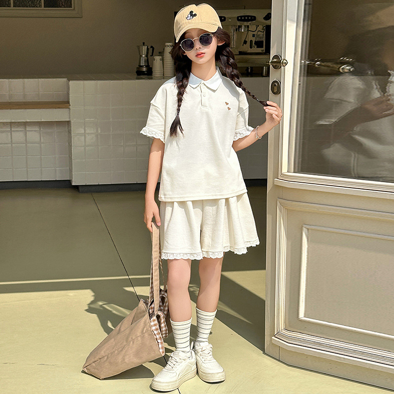 女の子の夏の韓国版カジュアルポロシャツ半袖スポーツスーツの女性の大きい子供の洋風の流行の子供の夏服のショートパンツ
