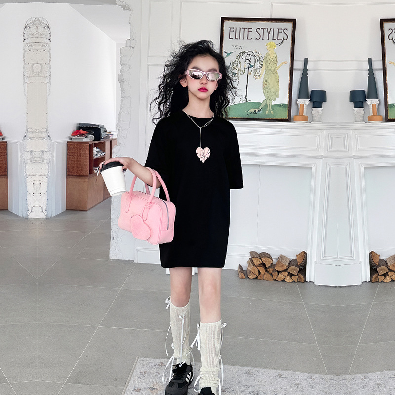 女児半袖tシャツ2025新型女児夏の甘くてクールでゆったりした半袖の子供の韓系の中の長い上着