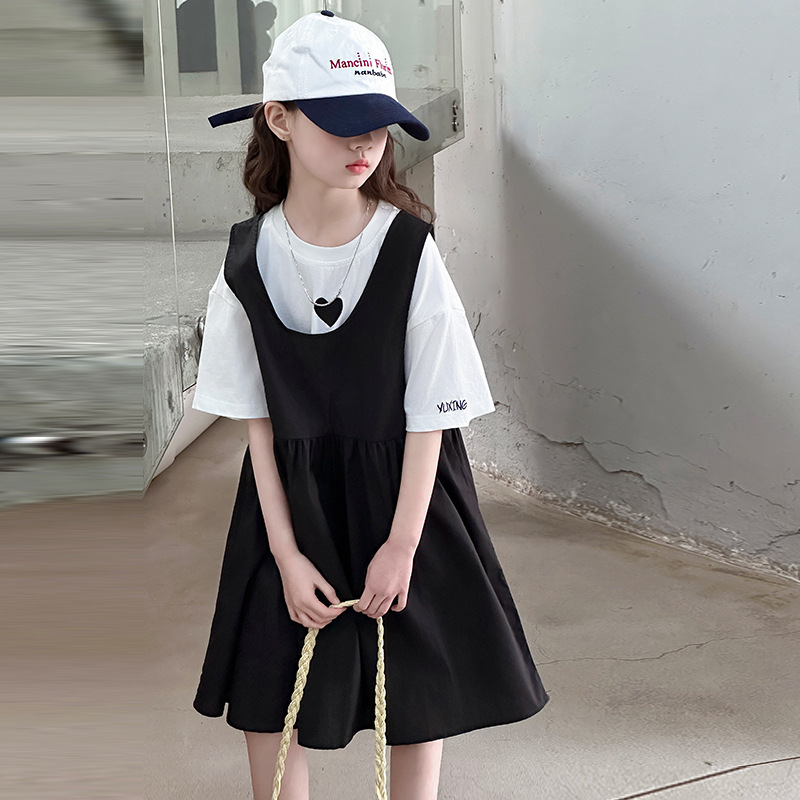 ガールズワンピース夏2025新作中大童スカートセット洋気子供女の子背もたれスカート2点セット