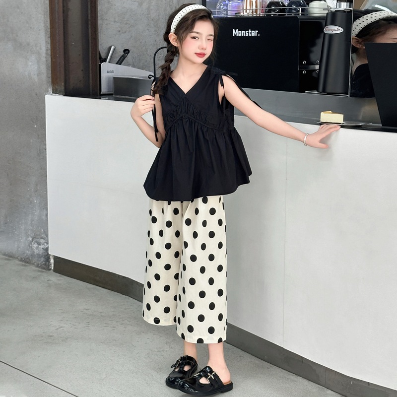女の子セット夏2025新型洋気少女チョッキ人形シャツ夏服中大童波点二点セット