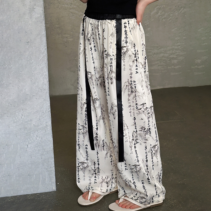 女の子のワイドパンツ2025春夏の新型の中で子供の薄いタイプの国風水墨画のカジュアルなズボンの漢服の古風なズボン