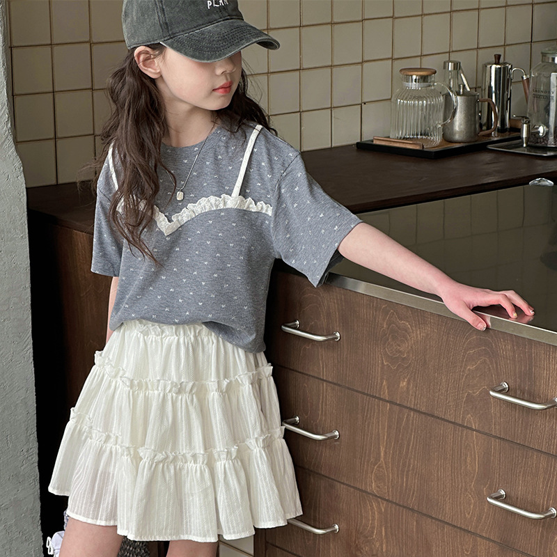 女の子半袖セット夏2025新作洋気大童夏服半袖tシャツ子供半身スカート2点セット