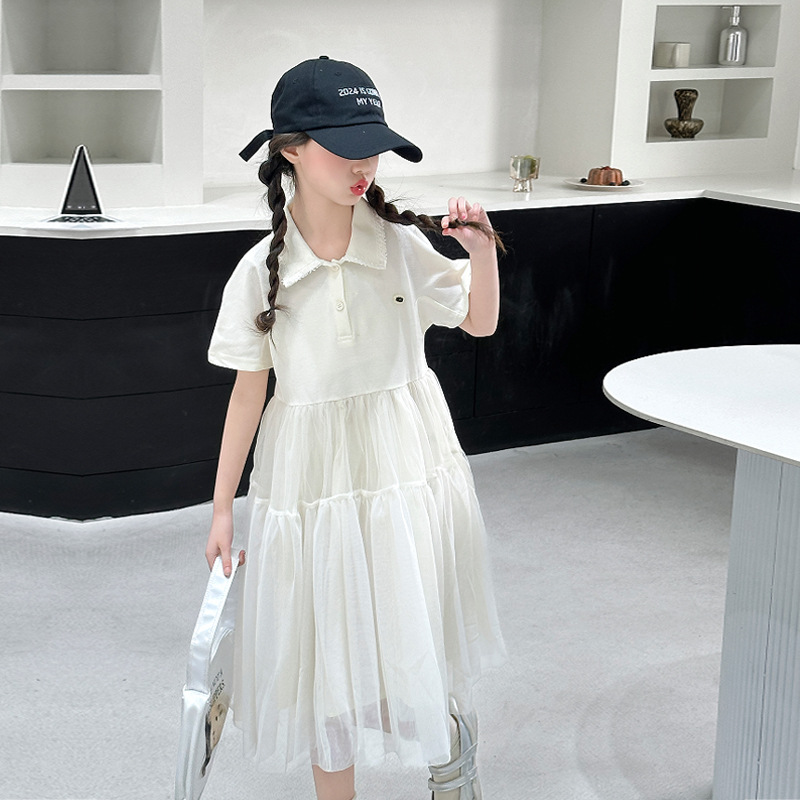 女の子ワンピース夏服2025新作洋気子供夏プリンセススカート女の子半袖糸スカートPoloスカート