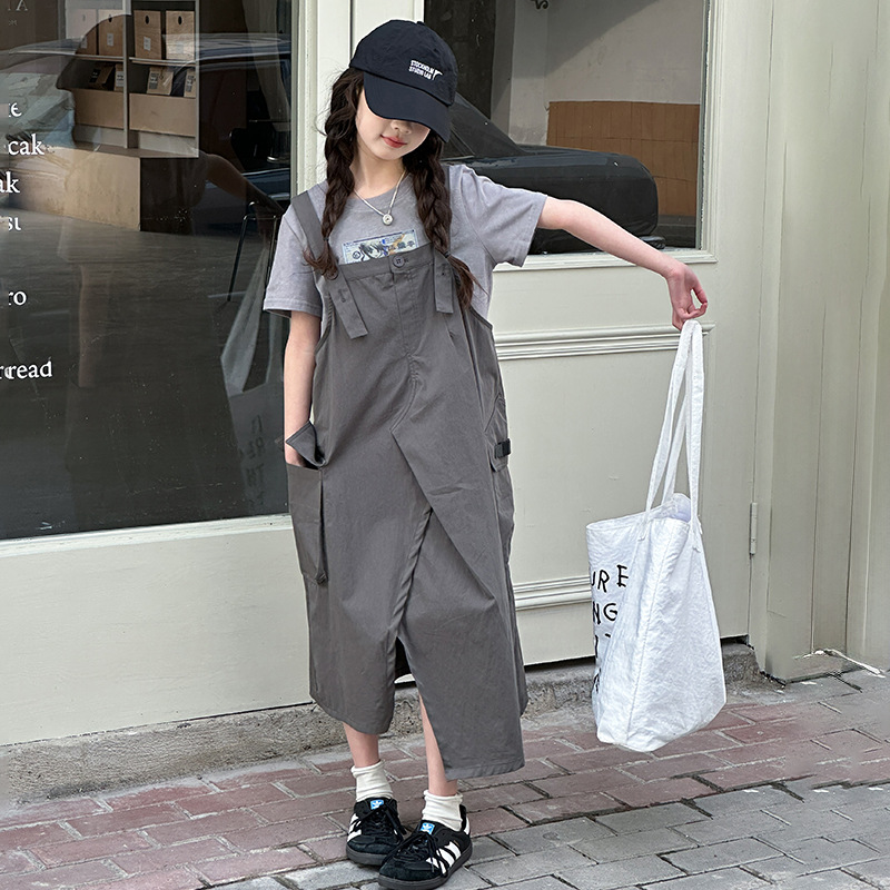 女の子2025夏服のワンピースの女の子韓国系の子供の背もたれのスカートのtシャツの2つのセットの子供のファッション的な洋風