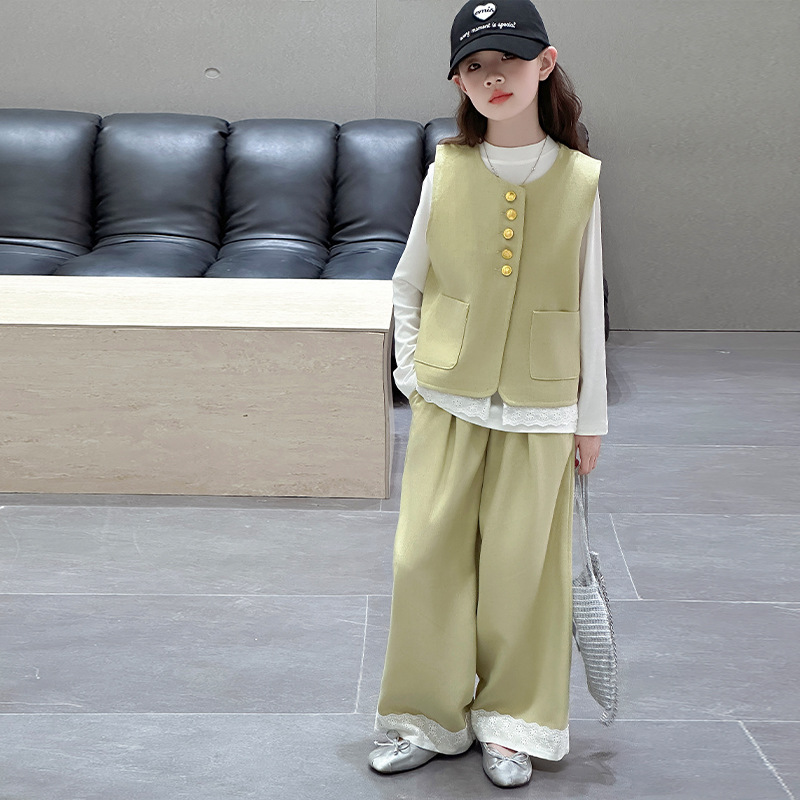 女の子セット春秋2025新型子供の洋風ファッション馬甲三点セット春装子供の女の子の香り