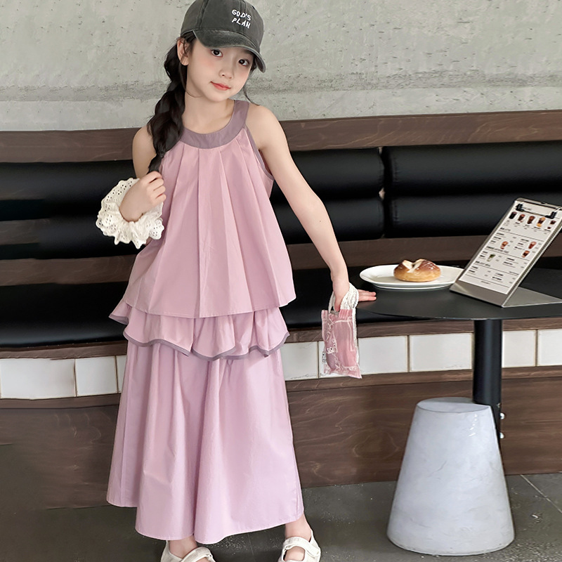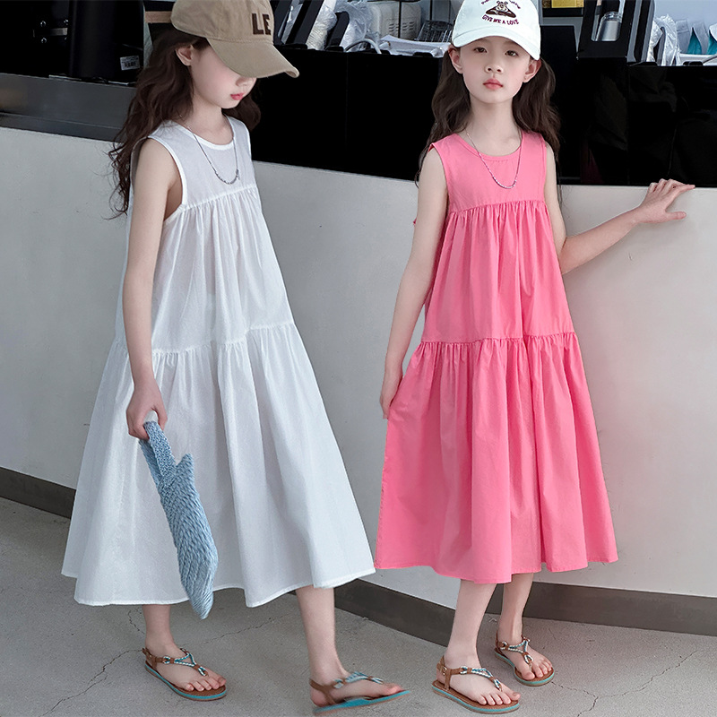 女の子のワンピースのノースリーブのベストのスカート2025夏の新型の子供の洋風のスカートの夏服の小さい女の子の長いスカート