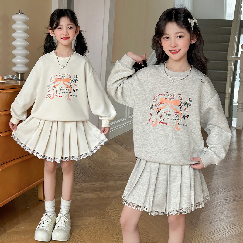女の子の大きい子供の春の服の2025新型のスーツの女子学生の洋風の流行の春秋のタイプのカジュアルな女の子の衛衣の2つのセット