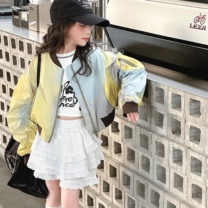 女の子のグラデーションのコートのパイロットのジャケットのコートの2025春の新型の中で大きい子供のゆったりしている野球の服の潮春秋