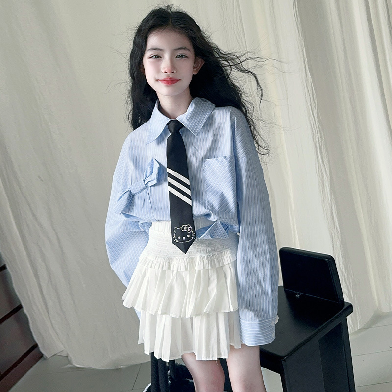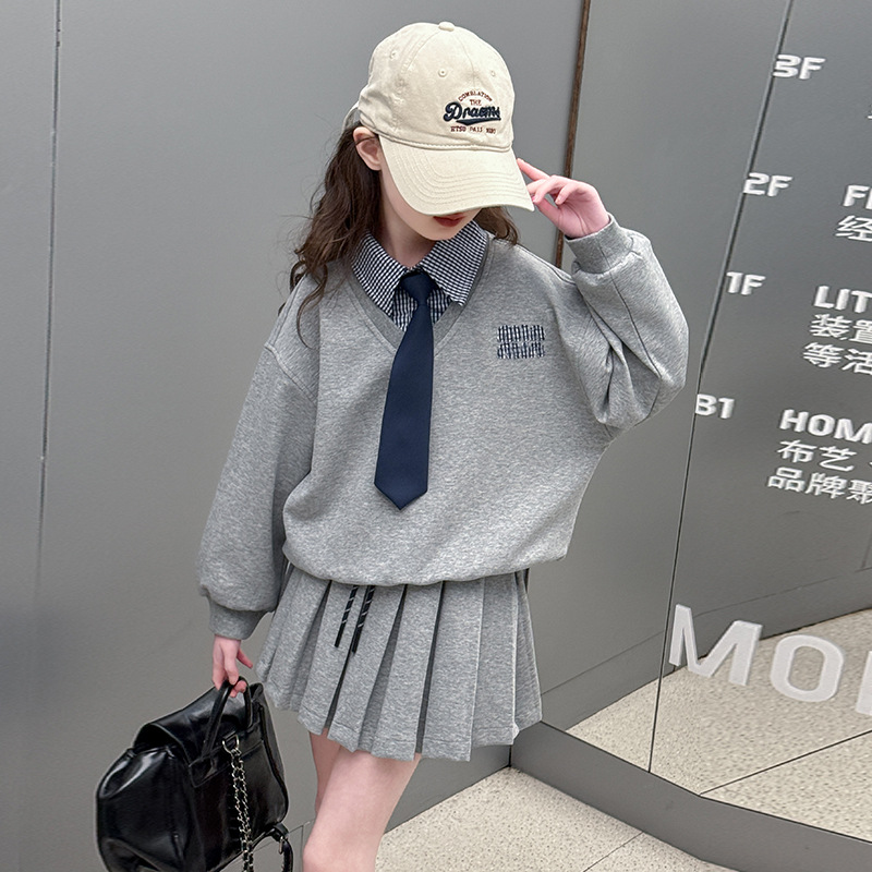 女の子の偽の2つのガードルのスカートのスーツの春秋2025の新型の中で大きい子供の学院の風の洋風のネクタイのスカート