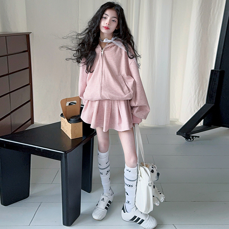 女の子セット春秋モデル2025新型洋気児童ピンクのガーディアン女性の春のスカート2点セット