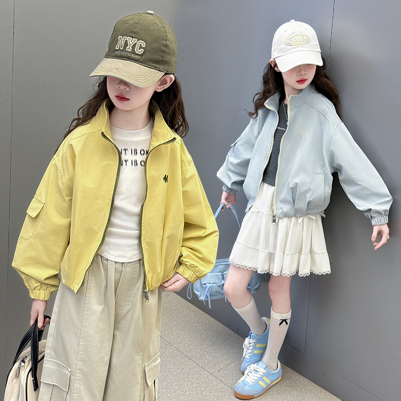 女の子コート2025新型韓国版洋気立襟ジャケット子供春カジュアル長袖上着