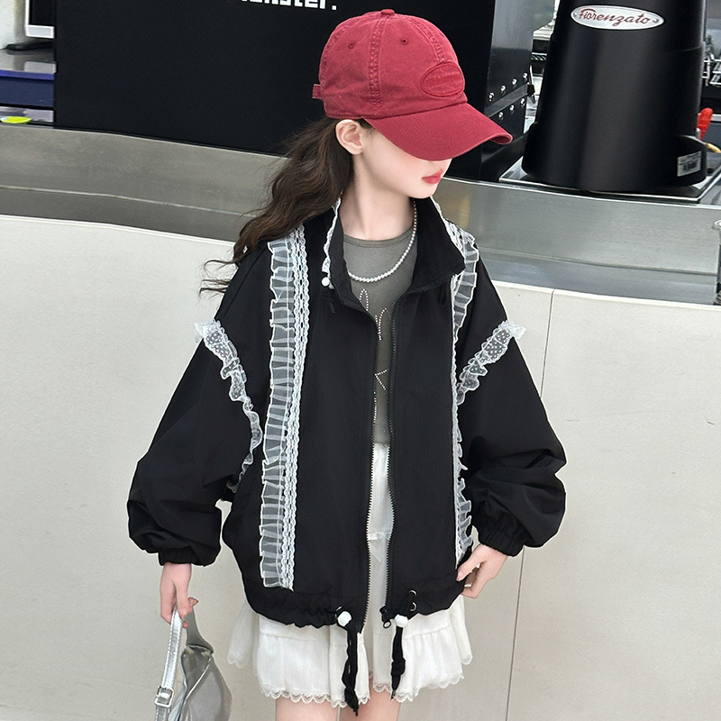 女の子春服コート2025新型洋気子供春レース少女春秋カーディガン上着