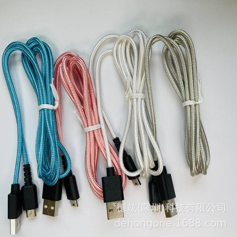 NDSLゲーム本体USB充電ケーブル1.5メートル黒色編組プラグニッケルメッキに適しています