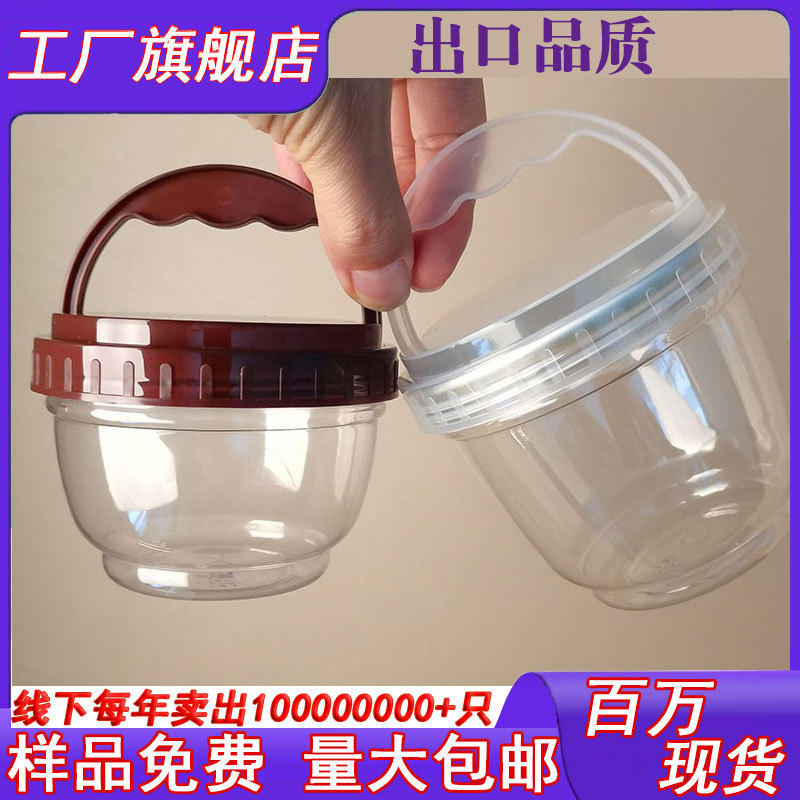 500mlの古いヨーグルトの大きい腹のプラスチックの缶の西域の米農の同項の円形の透明な螺旋の缶のヨーグルトの密封の桶