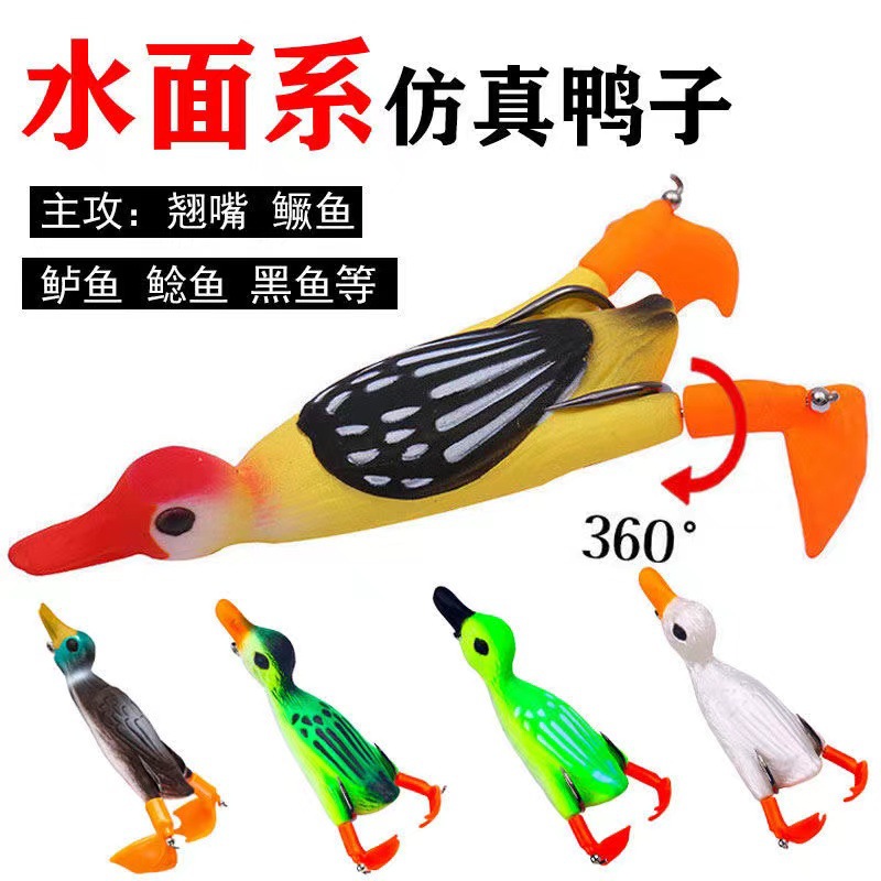 新型フローティングルアー餌、ダック型水面トラクター、ダブルスパイラルレッグ、レイフロッグ、ブラックフィッシュソフトベイト、メーカー卸売