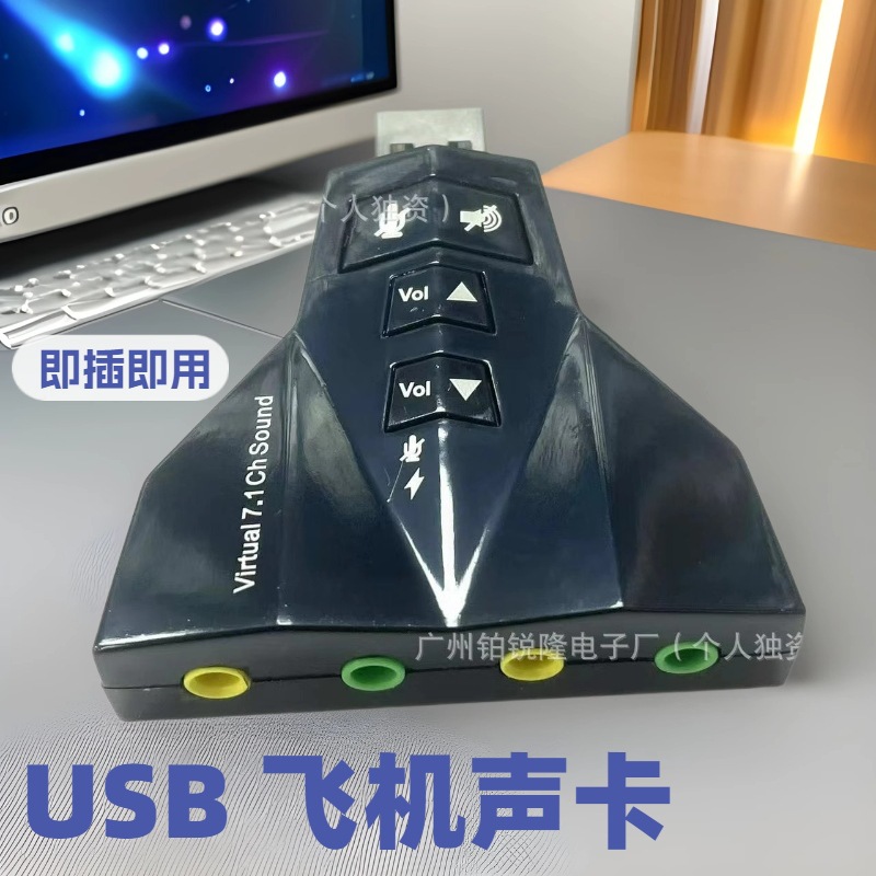 メーカーは国境を越えた起爆金4インターフェイスとボタン付きusb 7.1チャンネル外付け飛行機サウンドカードを直接販売している