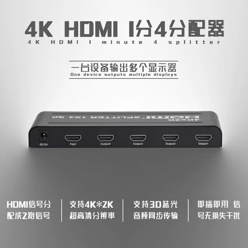 4K HDTV 4ポート1分4分配器金属ケースマルチインターフェースはビデオhdマルチスクリーン拡張に適している