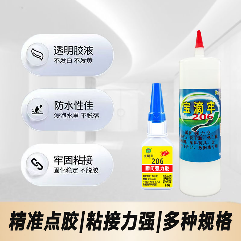 正品宝牢滴206接着剤無白化瞬間強力接着剤ABS PVCプラスチック玩具金属専用接着剤