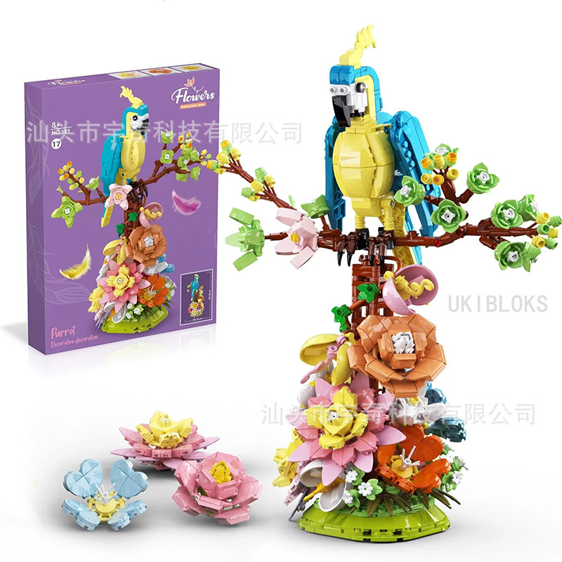 Zuanma 101-17 鳥と花の香りシミュレーションオウム植物花子供の科学教育パズルスプライシング小粒子ビルディングブロック