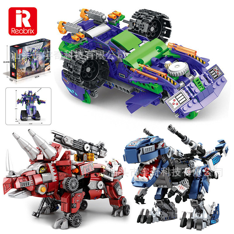 Zhenzuan 33001-03 リモコン 3-in-1 変形ティラノサウルスレックス小粒子組み立てビルディングブロックモデル子供のおもちゃクロスボーダー
