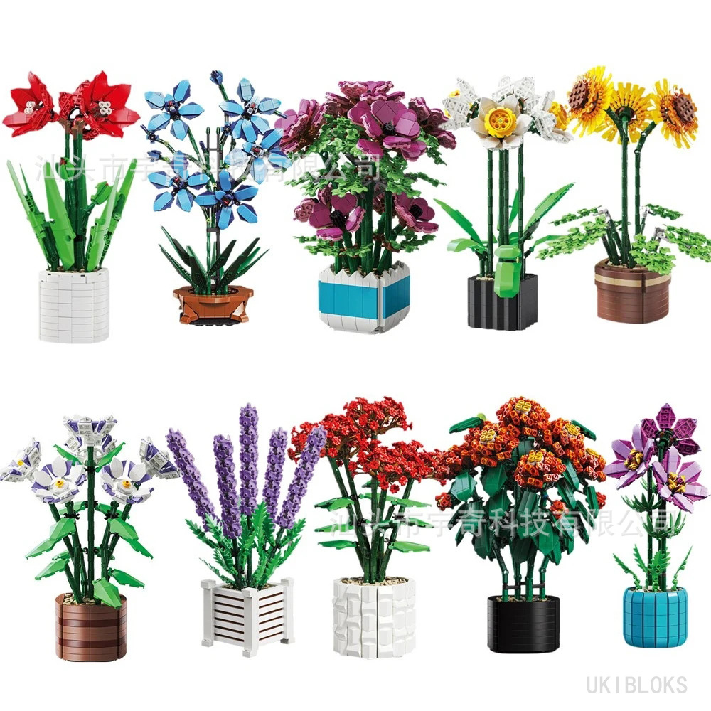 Zuanma 113 はレゴビルディングブロックフラワーネットレッド鉢植え花束小粒子組み立てビルディングブロックおもちゃの装飾品卸売と互換性があります