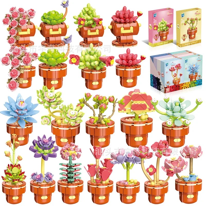 Meiji 13066-13067 花言葉鉢植えビルディングブロックフラワーパズルアセンブリ女の子のおもちゃデスクトップ装飾品クロスボーダーギフト