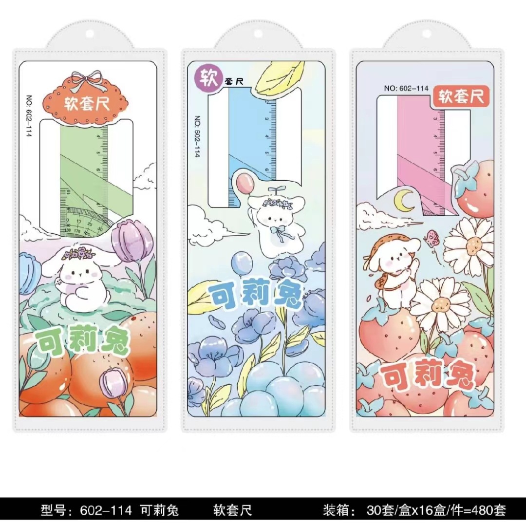ソフト定規4点セット小学生20cm波線付き学生文房具セットかわいい多機能カラー定規
