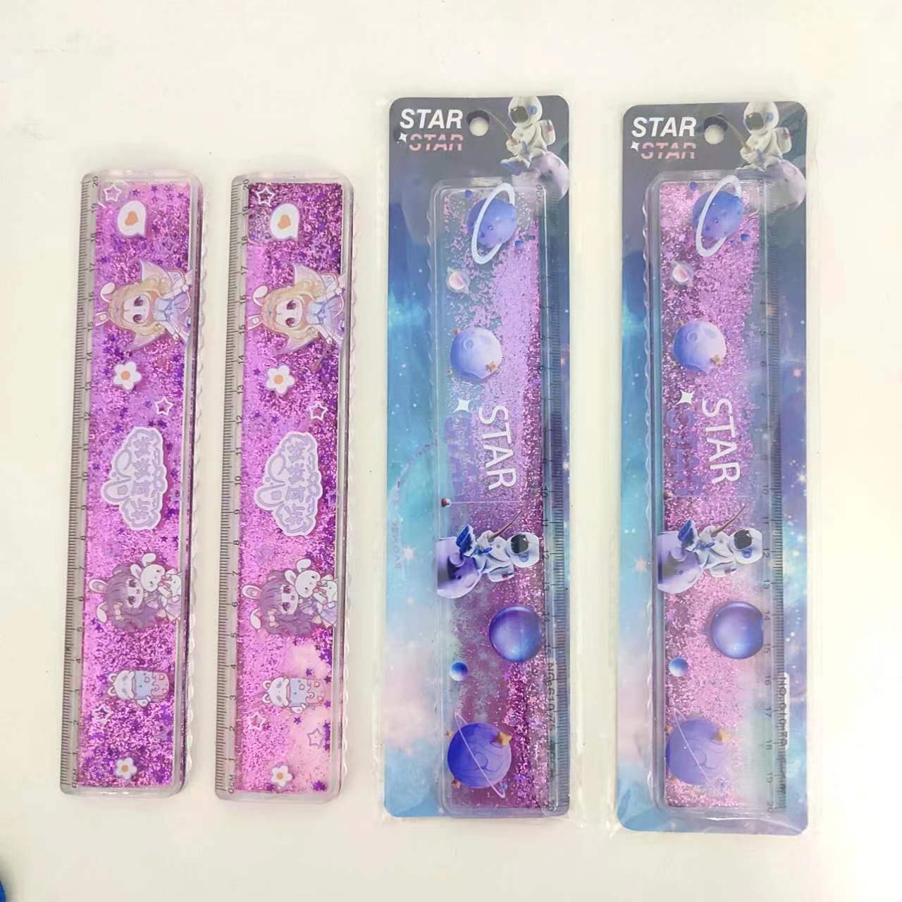 アニメは油を流して砂の物差しの創意がかわいい少女の心の小学生の絵の目盛りのまっすぐな定規に入って文房具を勉強します。