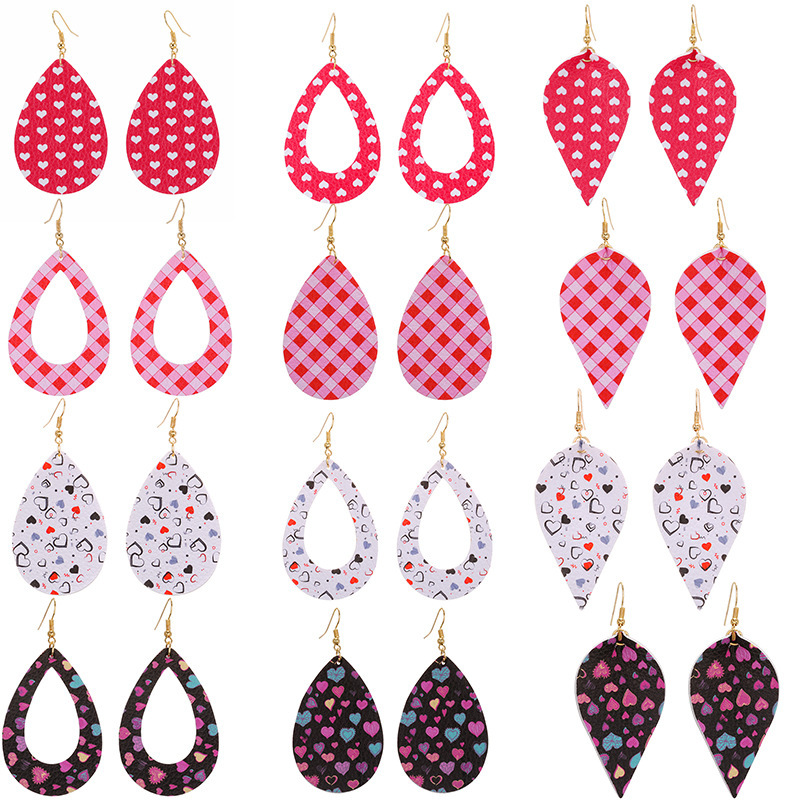 欧米の新型の皮のイヤリングのアイデアのバレンタインデーの愛の水滴の皮のイヤリングのファッションのpu皮のイヤリングのメーカーは直接販売します。