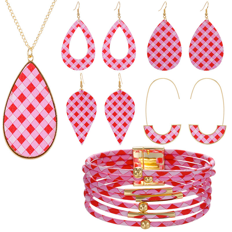 欧米国境を越えたアクセサリーバレンタインデーピンク愛シリーズ革イヤリング女性合金ブレスレットネックレスセット