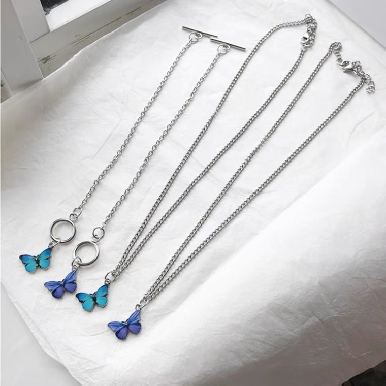 韓国ins蝶のブレスレットのネックレスセット欧米の夢幻の青い蝶のブレスレットの気質のアクセサリー