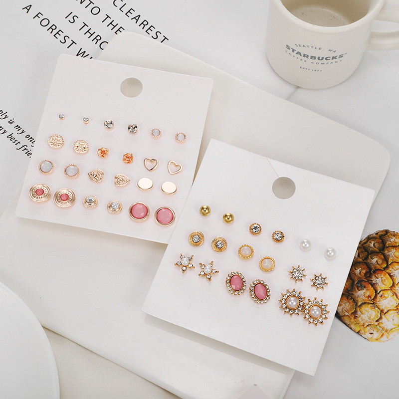 12対ギリシャ神話愛ピアス女性シンプルで甘い円形筋目白玉ダイヤモンドミニセットイヤリング女性