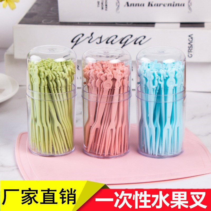 家庭用使い捨てフルーツフォーク箱入りセットプラスチックフルーツピックケーキフォークデザートフォークフルーツフォーク卸売