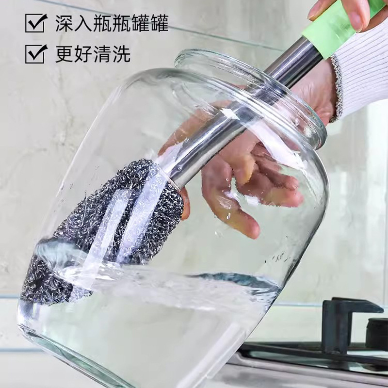 長柄ステンレス鍋ブラシ 長柄ワイヤー鍋ブラシ キッチンノンスティック鍋ブラシ 掃除・除染食器 ワイヤーボールブラシ