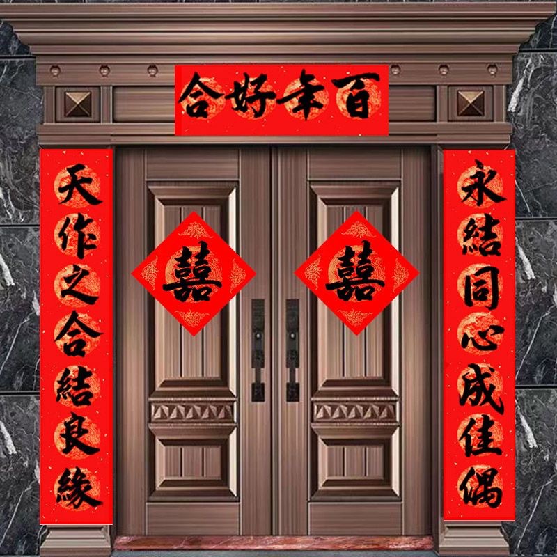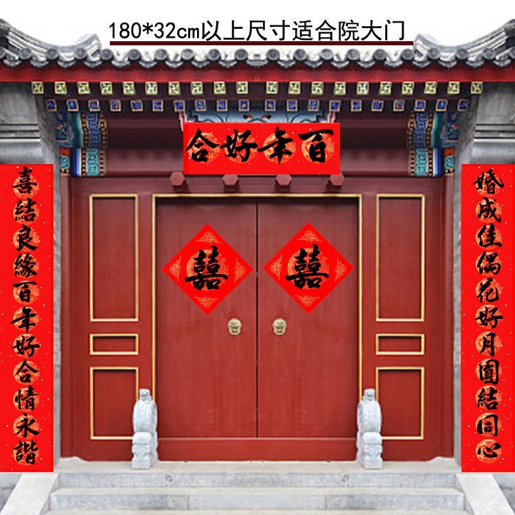 卸売り対聯結婚手書き喜対聯大門11言結婚連合男性女性結婚祝い農村家庭用喜聯