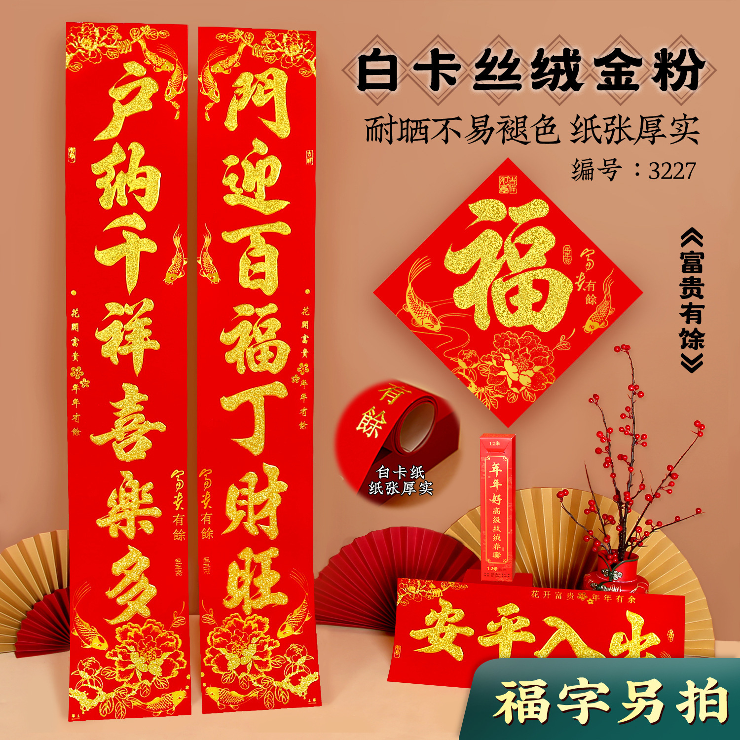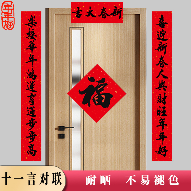 新型春節家庭用対聯新年書道新春吉慶有余絨布魚版春聯農村大門聯