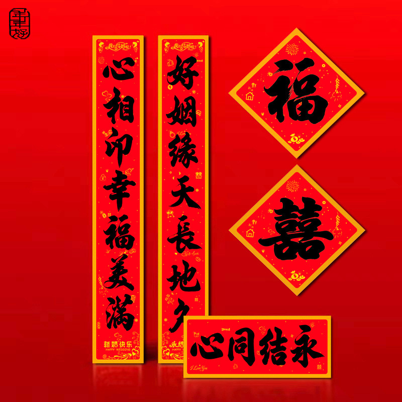 結婚式の対聯、結婚式用品、結婚式の装飾、新婦の出産、新郎の出産、田舎の門、新婚祝い、お祝いの対聯