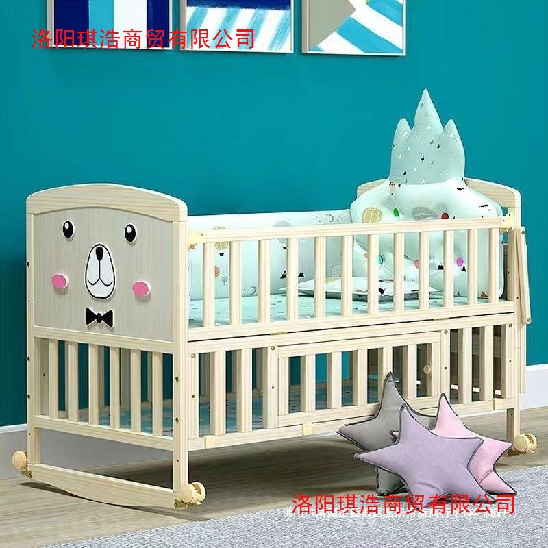ベビーベッド無垢材多機能クレードルベッドは大きなベッドに接続可能幼児ベビーベッド無塗装ベッド二層調節可能