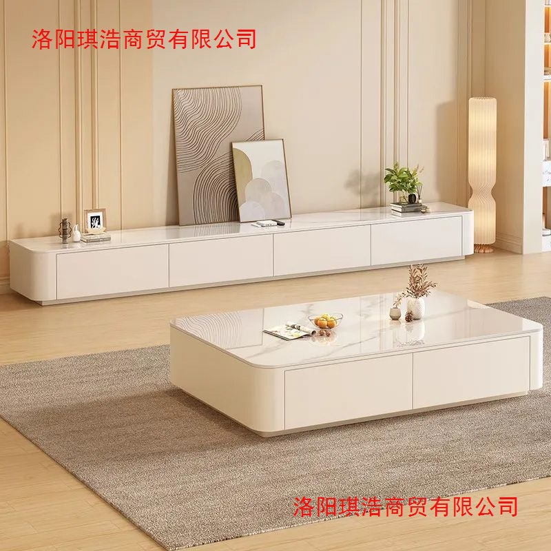 クリームスタイルのホームリビングルーム小さなアパートメント床置き強化ガラスコーヒーテーブルテレビキャビネット組み合わせリビングルームテレビキャビネットセット