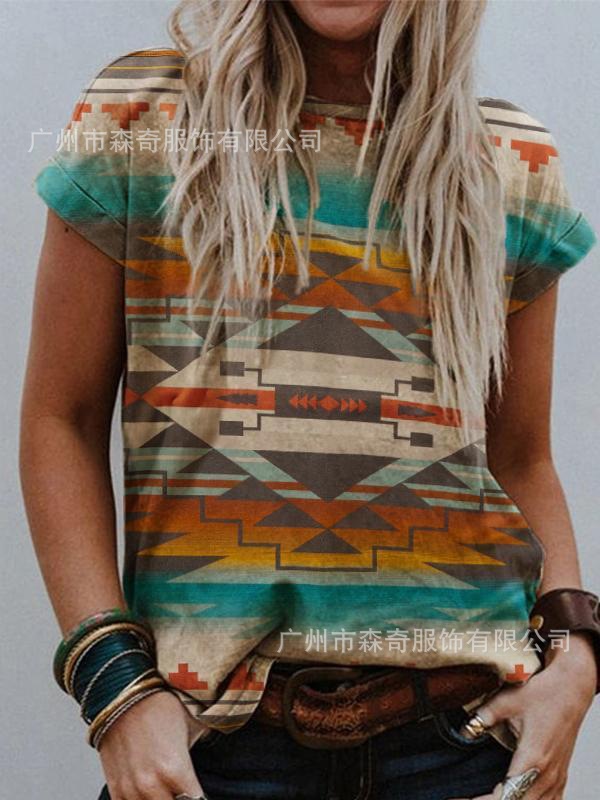 2023夏の新しい都市カジュアル丸首プリント半袖ゆるいtシャツ女性tシャツ女性対外貿易wish